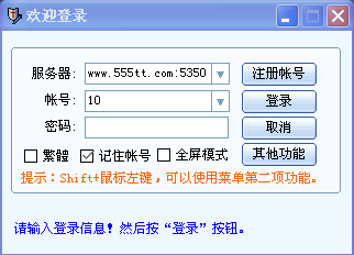 2)在帐号栏中输入所申请的帐号。 3)在密码栏中输入申请时所填的密码。 4)按回车键或用鼠标单击“登录”按钮。
